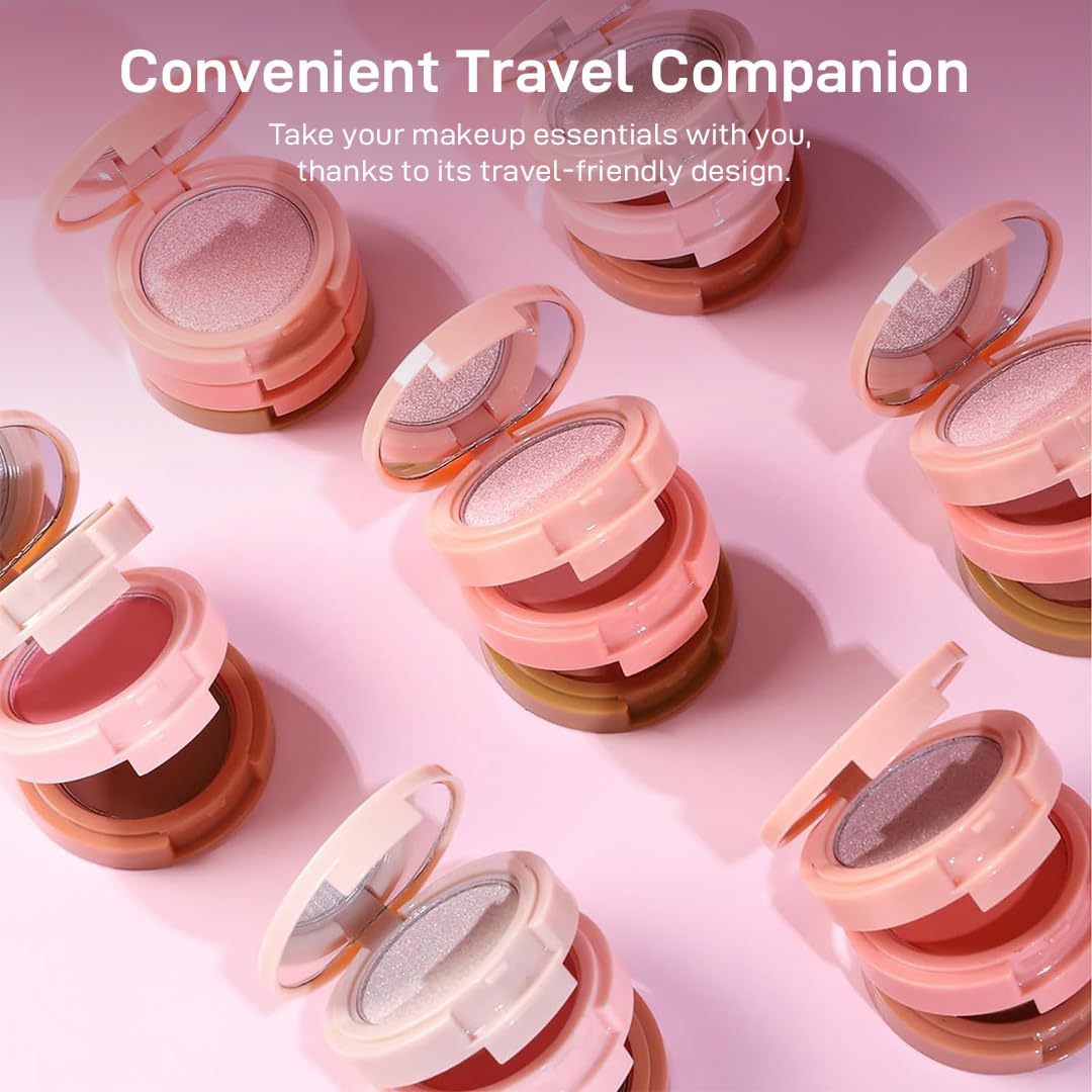 3-in-1 Makeup Palette: Blush, eyeshadow, and contour highlighter in one, with three shades for versatile styles.